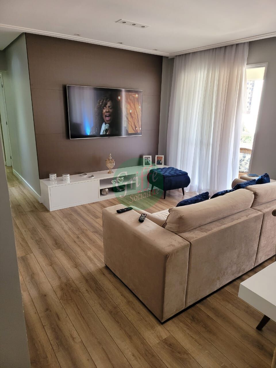 BELÍSSIMO APARTAMENTO COM 104m² : 03 dorms com armários, 01 suíte, living amplo para 02 ambientes com sacada, cozinha planejada com armários, w.c social e 02 vagas de garagem.